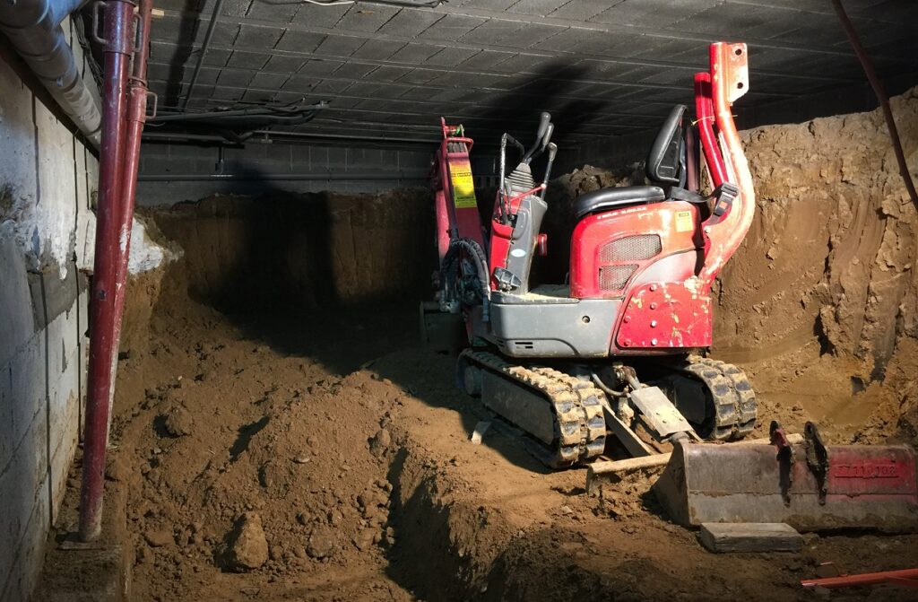 Création d’un décaissé dans une cave et dallage